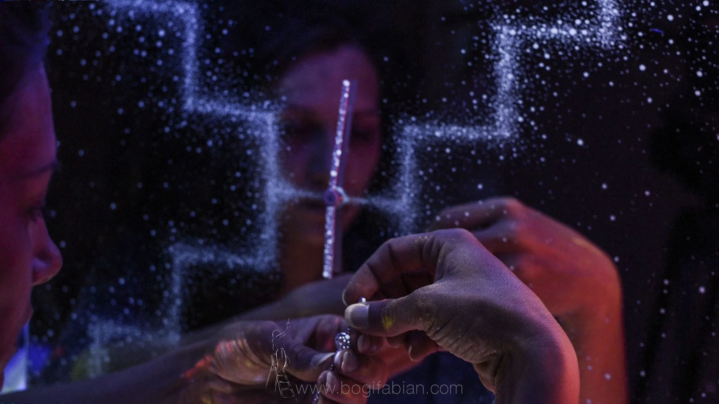 The clock's creation took about 130 working hours and meticulous attention. Since my work is usually done under ultraviolet light, it is also handy to have the clock visible without any other light source. It is only up to us whether we let time slip away or harness it and use it wisely.